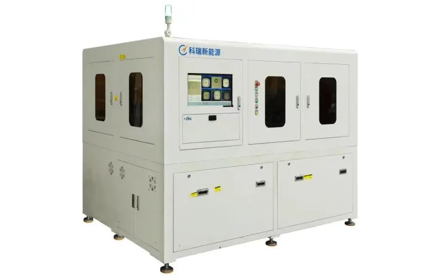 激光模切分条一体机主要应用于极片极耳成型与极片分条,制成品可供应叠片设备与卷绕设备。采用激光高速切割技术,搭配独立自适应除尘系统与排废料系统,在独立空间内进行极耳切割;通过收放卷装置、牵引装置与张力控制装置实时联动,控制极片稳定高速传输,通过五金刀模进行极片分条,并采用高速相机自动识别切割质量、尺寸精度与来料异常,及时排除品质不良,保证产品质量安全。